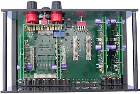 Underneath the DNM 3D Six Preamplifier - showing the new power supply distribution pcb, a four layer design. The design highlights listed below are all unique to the DNM 3D - they all contribute to improved sound quality. 1. Three dimensional design to control magnetic effects and exploit the use of printed circuit boards turning their use to advantage in the design. |